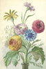 Oude meester voor aan de muur: Boeket met bloemen in de hals van een groene vaas